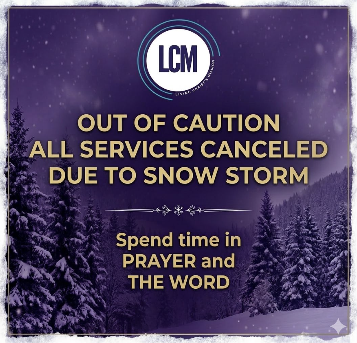 All activities and Services for 3/15 are cancelled due to the snow storm. Spend time with Jesus in prayer and/or his Word!